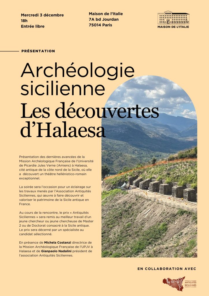La soirée sera occasion pour un éclairage sur les travaux menés par l’Association Antiquités Siciliennes, qui œuvre à faire découvrir et valoriser le patrimoine de la Sicile antique en France.