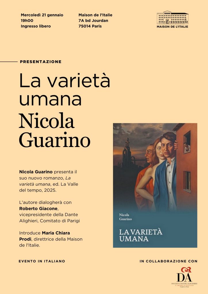 L’auteur s’entretiendra avec Roberto Giacone, vice-président de la Dante Alighieri, Comité de Paris.